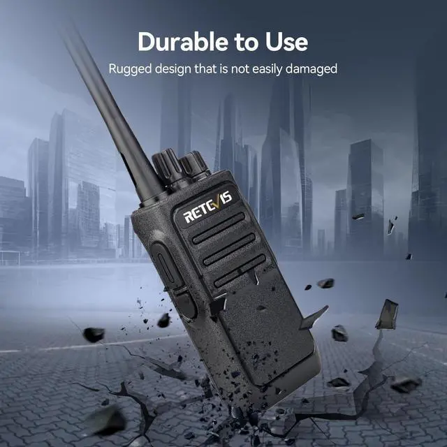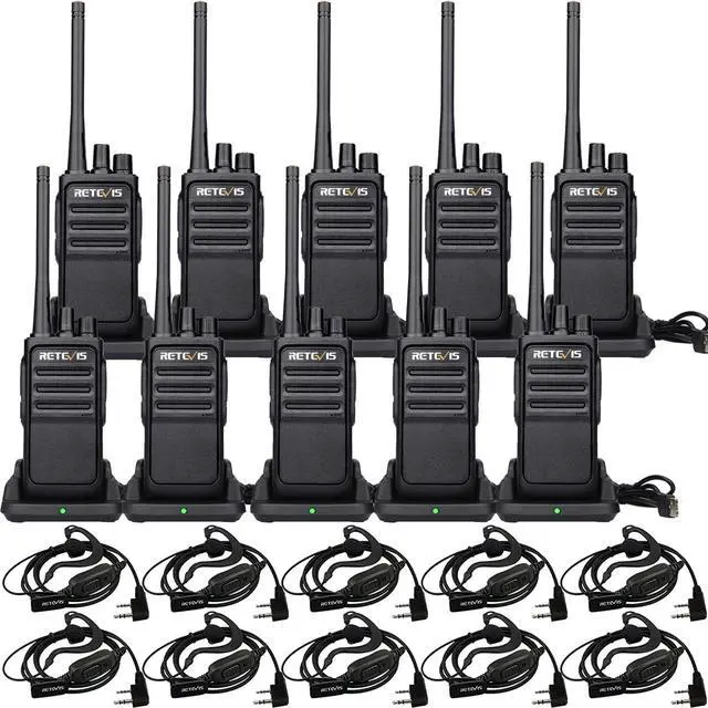 Strong compatibility; license free walkie talkie; 16 channels; can work with other FRS radios with 16 channels on the same channel and the same CTCSS; such as Retevis RT22 RT21 H-777 RT68 etc ^^ Sturdy and well-built two way radios; strong durability; even if it falls from a height of 1 meter; the antenna and button will not fall off; extend the life of the walkie-talkie and improve the work efficiency of school administrators ^^ Walkie talkies long range; the signal can pass through concrete walls with metal buildings; provide you with good range and clear communication; suitable for school; church; restaurants; retail; pet resort; animal hospital; clinik ^^ Rechargeable walkie talkies; 1200mAh Li-ion battery can be used over 10 hours; power saving function extends battery performance; low battery alarm reminds you to charge in time ^^ Two way radio with USB charger base; the base indicator is green when fully charged and red when not fully charged