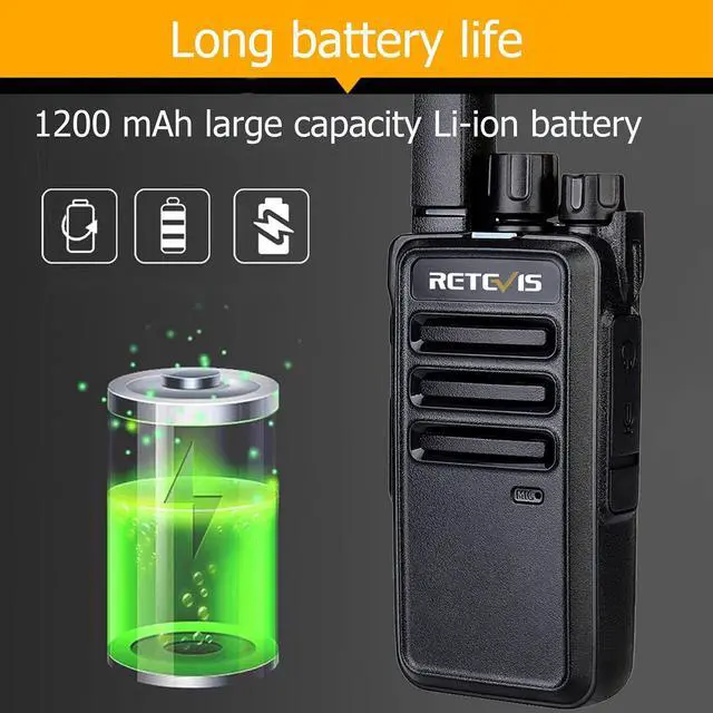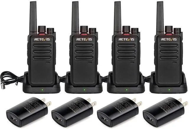 Portable and Simple Walkie Talkie; work out of the box; simple enough that not only can adults use them comfortably; children can also hold & use easily ^^ Durable 2 Way Radio; rugged enclosure; one meter free fall; the walkie-talkie has no damage and can continue to work normally; longer service life ^^ Wide Range and Strong Penetrating Power; RT68 walkie talkies can work in buildings and between concrete walls; provide you with good range and clear communication ^^ Charging is Safer and Orderly; with USB charging base and adapter; USB charger can provide you with more charging methods; indicator can help you check the charging status ^^ Long Battery Life; with 1200 mAh large capacity Li-ion battery; usually takes 3-4 hours to fully charge; provides up to 24 hours of battery life; allows you to stay in communication through out the day