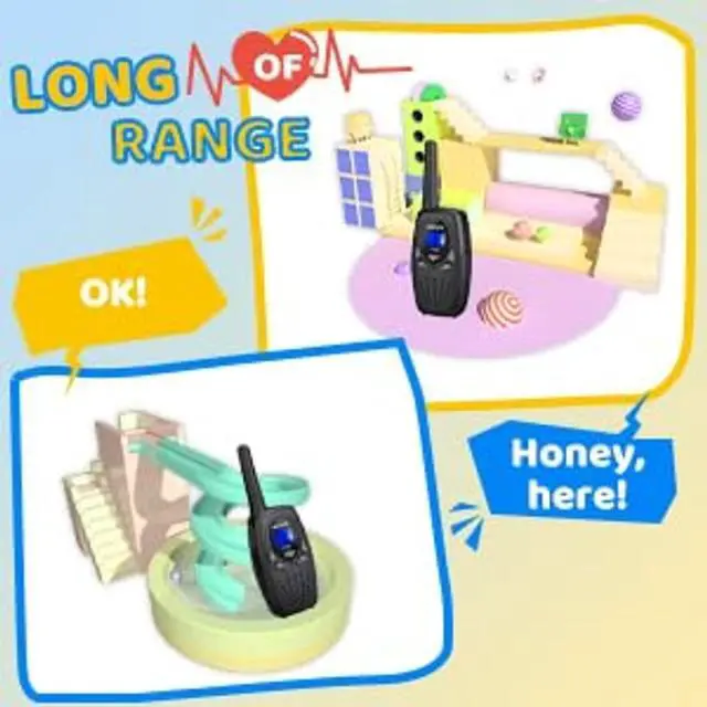 Pack surprises into an adventure backpack; give your child a "Springtime Little Guide" walkie-talkie; embark on a spring journey of camping, picnics, and hiking; the soft gasp of surprise upon seeing a butterfly; waving across the stream-no phones needed, no dialing waiting, just instant communication; let every explorat ion be connected; let every curiosity be heard ^^ Long range two way radio; 22 channels can be selected and individual CTCSS/DCS tones; the coverage distance of the walkie-talkie can reach 1000 meters in open areas; the communication distance is affected by terrain obstacles ^^ Clear sound and key lock function; kids walkie-talkie has call tone; sound quality is crisp and smooth and the volume is adjustable; equipped with key lock function it is difficult for children to modify the channel which enhances the fun of parent-child interaction ^^ Easy to use; the sound quality is clear and smooth and the volume is adjustable; key lock not easy for children to modify the channel; it has a voice-free (VOX) function and supports multiple simultaneous calls; press the PTT button to talk ^^ Easy to use; 4 pack kids walkie talkies; mini size with large LCD screen; volume adjustment VOX makes send signals without pressing PTT button; keypad lock avoid misoperation; belt clip can hold on clothes bag
