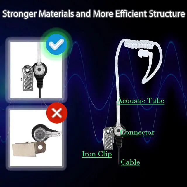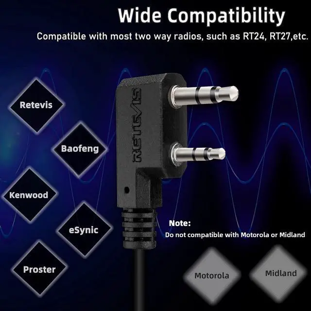 Clear sound quality; walkie talkie headset has lower impedance; provides you with clearer and louder sound ^^ Soft earbuds; walkie-talkie earphones feature soft and comfortable earbuds and specially designed sound tubes; earphones fit easily in your ears; fit snugly in both left and right ears ^^ Longer cable with coil design; 2-way radio headset with longer cable and partial coil design; maximum coil telescopic length 705cm; also suitable for people of different heights to wear ^^ The material is sturdy; makes the walkie talkie headset more durable and can be used longer; greatly effectively extending the service life of the headphones ^^ K head 2 pin; for Retevis RT22 RT21 H-777 RT68 RT22S RT27 H777S RB29 RB89; compatible with Baofeng UV-5R 888S Kenwood pxton walkie talkies and more