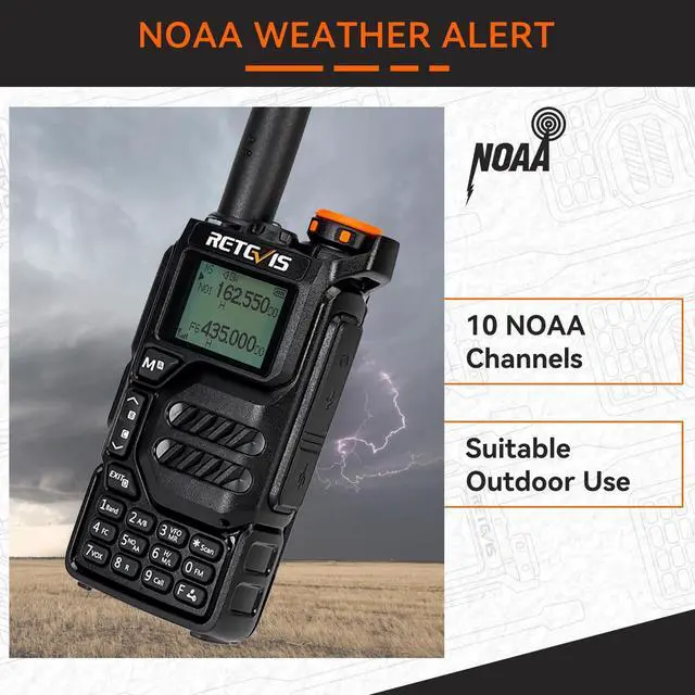 Multi-band amateur walkie talkie; 2m and 70cm band receiver and transmitter; 1.25 m/AM (Aviation) /FM/NOAA reception; greatly expands the user's communication range and flexibility; keeping you informed across various scenarios ^^ Easy to use for beginners; the large screen clearly displays all info; dedicated A/B band keys and customizable side keys put critical functions at your fingertips; adjustable high/medium/low power optimizes range and battery life ^^ Emergency Alarm & Flashlight; the instant SOS alarm draws attention during distress; while the reliable flashlight cuts through darkness; making it indispensable for camping; survival; and urban safety ^^ Built-in NOAA Weather Alert; receives extreme weather warnings; giving you precious time to prepare for storms; floods; and other natural disasters; also convenient for daily outdoor activities ^^ Rechargeable two way radio; the 1400mAh battery offers extended talk time; supports modern USB-C charging (even with a power bank) and an optional desktop dock for ultimate convenience ^^ Supports CHIRP and VFO mode; users can choose to manually set the frequency through the keyboard or use a PC to add new channels and settings ^^ Powerful team management; ham radio with 200 channels; use frequency copy to instantly configure your entire team; DTMF for selective call; group call; and individual call; enabling precise and private communication