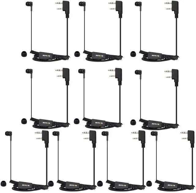 Clear quality; impedance of 2 way radio headset is about 32Ohm15%; low impedance provides clearer sound quality for the communicator ^^ Coil tube design; the length of the radio earpiece wire can be stretched according to actual needs; ear piece for walkie-talkies can be used by people of different heights in the team ^^ In-ear earplug; two-way radio headset provides clear and concealed calls; suitable for left or right ears to wear ^^ Double cable design; 2 way radio earpiece with mic more convenient to wear; the length from the earbud to the PTT is about 20.28 in; the length from the PTT to the pin is about 35.82 in ^^ K head 2 pin; walkie talkie headsets compatible with most 2 pin two way radios; such as Retevis RT22 RT21 H-777 RT68 RT19 RT22S H-777S RT27 RT28 two way radios; compatible with Baofeng UV-5R 888S Arcshell Kenwood Pxton Samcom Two Way Radio etc