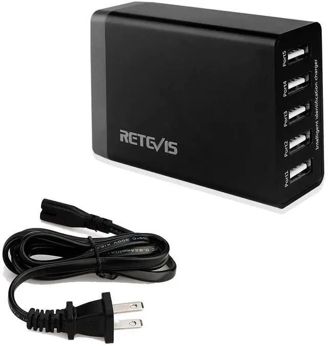 40W 8A 5-port USB charging station; you can charge five phones; walkie-talkies; FM radio or tablets together; it is very convenient whether you use it at home or when you go out ^^ Supports power IQ and voltage boost; each port can provide the maximum 2.4A charging speed ^^ Small size and light weight; hand size and weight at only 225g/ 7.94 oz totally provide you convenient using whenever you are at home; traveling; at work; on business; etc ^^ Super safety; it can protect your device against over-current; overcharging; overheating and short circuits ^^ 150cm/60in longer AC cord; you can put the charging base in your convenient place without worrying about the distance of the socket