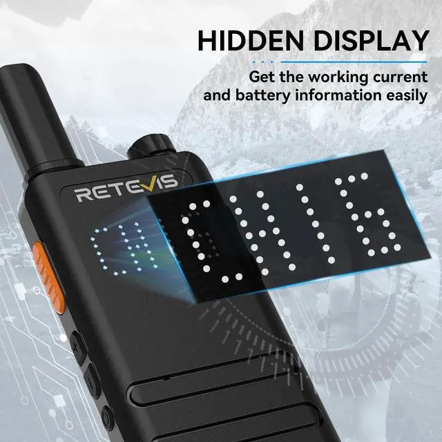 ID: 2A3OORT22D) and license-free; 16 preset channels can be selected; can direct communication with other Retevis FRS radios on the same channel and CTCSS/DCS; such as retevis RT22 H777 RT21 RT68 B3S B3B RT22P etc ^^ Ultra-Thin Ultra-Light; only 0.59 inch thickness; mini walkie talkies is convenient to carry while camping without having much pressure; minimalist style; business fashion ^^ Large Battery; Powered by a 1620mAh rechargeable battery; it delivers up to 18 hours of continuous use; standby time up to 49 hours; no need for frequent recharging; type-C charging port and 2-in-1 charging cable; more convenient to recharge two walkie talkies at the same time ^^ Shatterproof Hidden Display; B3H walkie talkie has strong durability; even when you climb mountain, you wont worry about affecting information check ^^ VOX Hands-free; Supports transmitting without pressing the PTT button; leaves your hands free to focus on the task; just adjusted to channel 7 and power off; then press the UP key and power on to turn on or off VOX