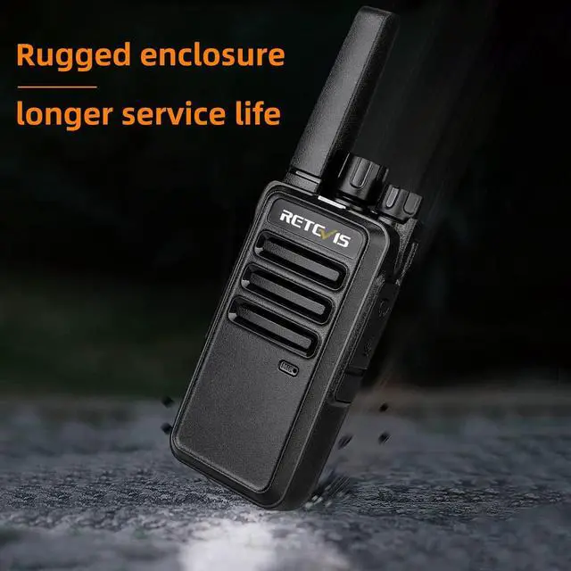 Portable FRS Two-Way Radios; license free; work out of the box; compact size for comfortable holding ^^ Durable Walkie Talkie; rugged enclosure; one meter free fall; the walkie-talkie has no damage and can continue to work normally; longer service life ^^ Wide Range and Strong Penetrating Power; RT68 walkie talkie can work in buildings and between concrete walls; provide you with good range and clear communication ^^ Safe and Orderly Charging; with USB charging base and adapter; provide you with more charging methods; indicator can help you check the charging status ^^ Long Battery Life; with 1200 mAh large capacity Li-ion battery; usually takes 3-4 hours to fully charge; provides up to 24 hours of battery life; allows you to stay in communication through out the day