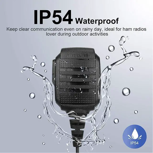 Rainproof waterproof shoulder speaker mic; IP54 waterproof and dust-proof speaker mic; great for use in outdoor activities ^^ Standard K head 2 pin plug; the shoulder speaker mic compatible with BAOFENG UV-5R BF-F8HP 5RM; pxton; SAMCOM; Kenwood; Retevis RT22 RT68 RT21 H-777 RT22S RT27 H777S RB89 and more ^^ 360 rotating clip; you can clip the walkie-talkie microphone anywhere on your shoulder to transmit the sound clearly; freeing your hands to make your work easier ^^ Durable PU Coil cable with in 4mm diameter; you'll get long term usage and high tensile strength experience ^^ Sensitive microphones and speakers; shoulder speaker mic allow you to communicate clearly even in a noisy environment