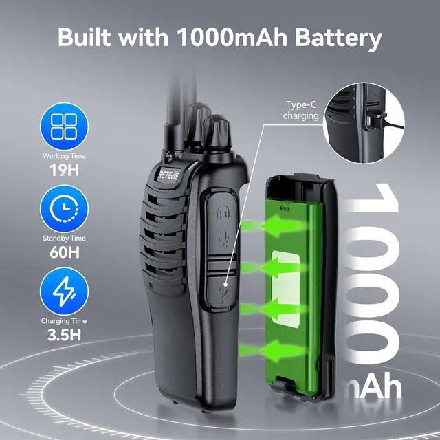 Diversified FunctionsH777 4.0 FRS two-way radio has 16 channel; the FCC ID is 2AAR8H777; you can also directly talk to walkie-talkies such as RT22 RT27 RT68 RT21 etc; with vox hands free; emergency alarm; power saving; led flashlight; low battery alarm; one-key pairing etc ^^ Easy to Operatemaster the operation method in one minute; ready out-of-box; shortcut keys for VOX; emergency alarm; one-key pairing; night flashlight; allows immediate use by school volunteers with no setup ^^ Handheld Walkie Talkie with Shoulder Micthis speaker microphone is suitable for outdoor enthusiasts; its lightweight; durable; clear sound and swivel clips design makes it makes it an ideal helper for business activities ^^ Upgraded Charging Methodmicro USB up to Type-C; offers faster and more convenient charging options; ensures rechargeable two way radios are always ready for use; ideal for busy environments like schools during events ^^ Emergency Alarmprovides quick access to panic alarm buttons; giving peace of mind to school staff during drills; retail employees facing urgent issues or church security teams during worship