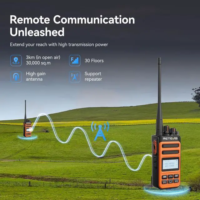 Equipped with a high-power transmitter; provides extended communication range ideal for remote or obstructed outdoor environments; repeater capable for even longer-distance coverage ^^ 1500mAh Li-ion battery with fast charging technology; recharges 0100% in just 100 minutes; minimizes downtime for continuous field operation ^^ Clear visibility; LCD screen displays essential information like channel; battery level; power settings; and CTCSS/DCS with clarity; during outdoor activities; quickly access the info of two way radio you need ^^ Built-in NOAA weather scan and alert system; delivers real-time severe weather notifications; enhances safety for outdoor users in changing conditions ^^ The bright colors ensure that if your radio falls to the ground; you can see it so that you can easily retrieve it