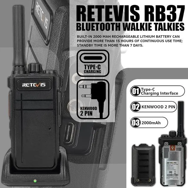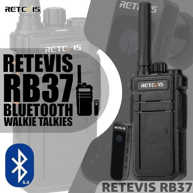 Attention: new version in-ear headphone cann't connect to old version RB37 bluetooth walkie talkiesthe walkie talkie bluetooth is compatible with bluetooth 5.0 and above ^^ Retevis RB37 directly talk with Retevis all 16 channel FRS radio on the 1-5 channels; such as RT21; RT22; RT68; H-777; if you need talk to other brand walkie talkies; please contact us via mail ^^ Out of the box; the Bluetooth earpiece is already paired with RB37 radio and can be used directly; upgraded Retevis RB37 Bluetooth walkie talkies connection is stable and faster ^^ Built in 2000mAh Li-ion battery; which can be used continuously for more than 10 hours; supports more than 7 days standby time ^^ RB37 handheld rechargeable radios has 180mAh Bluetooth earpiece battery; you can use it continuously for 5-6 hours