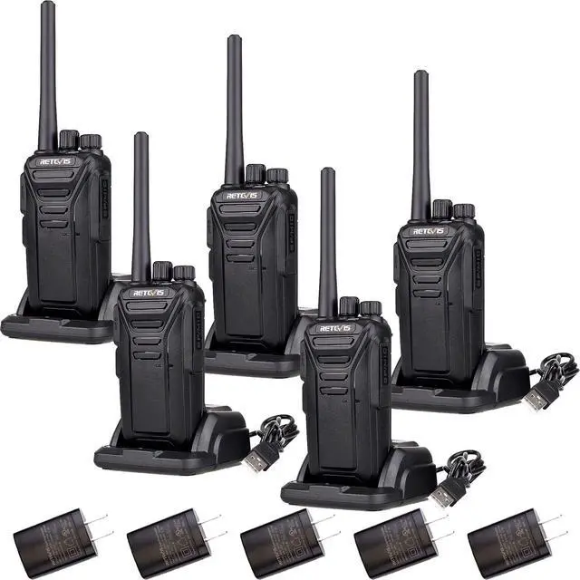 Durable thickened PC plastic shell for resisting shock; vibration; dust and splash; support for use in harsh environments; can still be used after drop test ^^ Loud and crystal clear sound; powerful audio output; clearly send and receive information even in the building; VOX hands free; transmit without pressing PTT; free your hands to do other things ^^ Walkie talkies rechargeable; takes 3-4 hours to fully charge; supports 10-12 hours of frequent use; allows you to stay in communication through out the day ^^ Each walkie talkie comes with a 1100mAh rechargeable Li-ion battery and a USB charging dock; supports multiple ways to charge; such as computer; mobile power or car ^^ Portable FRS Two-way Radios; no license required; out of the box; easy to use without complicated operation; lightweight and compact; easy to carry; just press PTT to quickly transmit messages to campus security; teachers; achieve rapid response