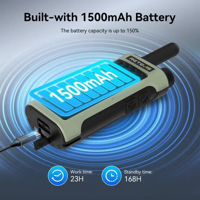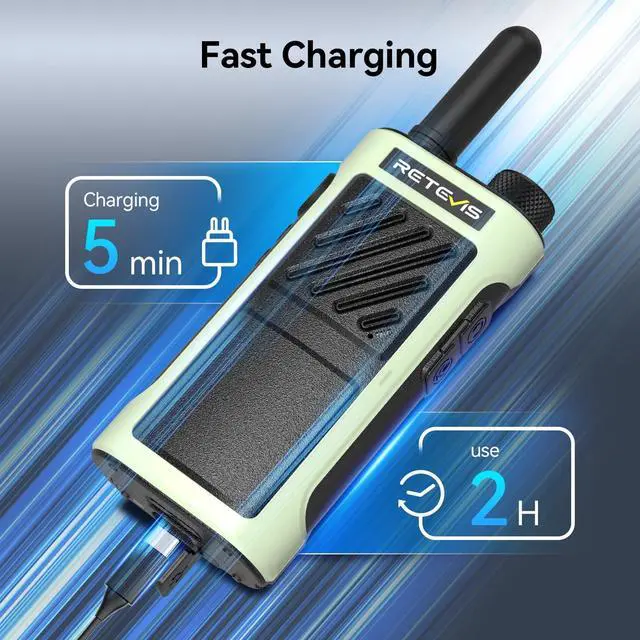 Fast Charging; amazing charging speed is triple as fast as ordinary walkie talkies; only 30 minutes charge 70% for RB66P walkie talkies to away from long waiting time ^^ Long-lasting battery life; 1500mAh lithium battery provides up to 12-16 hours of battery life; avoid disruptions throughout the workday; USB-C allows you to charge it at any time ^^ Walkie talkies with earpiece; ear hook allows comfortable wearing and keep in loop in ears without dropping for smooth communications during activities ^^ Emergency alarm; long press the side button 1 to turn on; your teams radio on the same channel can receive your call for help; to respond to emergencies ^^ Easy pairing; fast pair the same model of walkie-talkie; makes setup a breeze; don't have to set up every radio manually; help new or seasonal employees hit the ground running