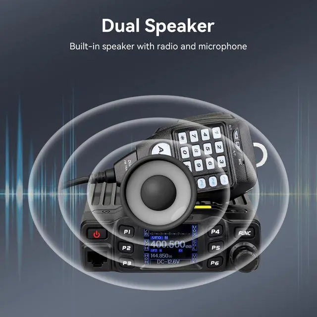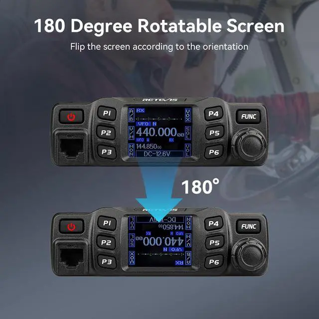 Dual Band Mobile Radio; 2 meter ham radio and 70cm mobile transceiver; it can quickly change the frequency band by the microphone; mini mobile two way radio; 6.42 x 4.88 x 1.54 inches; installation does not take up too much space; cables are included; FCC ID is 2ASNSRT95 ^^ Upgrade mic gain; available via firmware upgrade; mic gain can make weak sounds louder; but the higher the level; the greater the background noise; please adjust the gain level appropriately to get clear sound ^^ VOX function frees your hands; especially when driving; built-in speakers in radio & microphone; give you a clear call experience ^^ 180 degree rotatable TFT LCD display; the screen can be rotated and the radio can be installed upside down; more options for installation positions; LCD brightness control for easy reading outdoors and indoors ^^ VFO Mode & CHIRP; the RT95 mobile ham radio has a VFO mode; which can change parameters such as frequency without a computer; Users can use the radio to complete 90% of operations and changes ^^ Built in heat dissipation fan; continuous and stable operation even at high power output; shockproof and dustproof structure and voltage protection system; performance is not compromised in harsh environments; fully adaptable to vehicle/outdoor scenes ^^ Ready Base Station; easily set up a reliable base station at home or in the field; simply connect to a 13.8V /10A power source (not include) for full-power; crystal-clear coverageideal for emergencies; community events; and daily use ^^ Multi-function ham radio base station; VOX; mic gain; lighted keypad mic; built-in cooling fan; two operating mode display; 200 channels; CTCSS/DCS; DTMF; 5Tone; alarm; all call; ANI; remote kill; remote waken