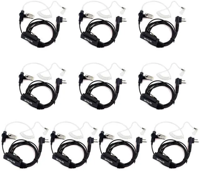 Retevis Acoustic Tube Earpiece for Motorola Walkie Talkies, Compatible with Motorola CP185 CP200 CP200d GP300 GP2000 MAG ONE A10 Walkie Talkies, Two Way Radio Headset with Big PTT Button(10 Pack)