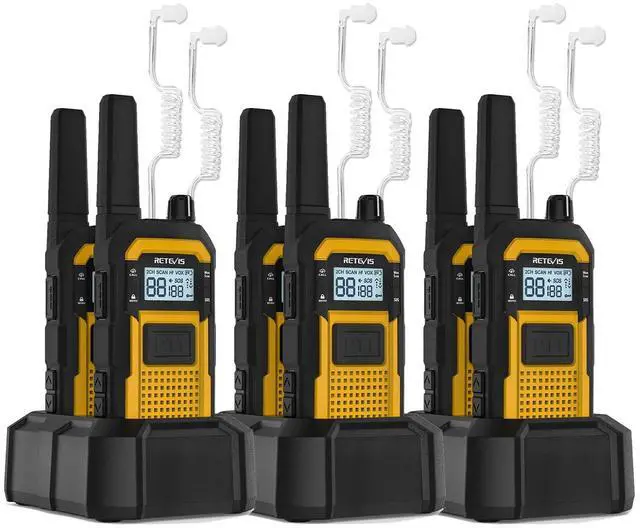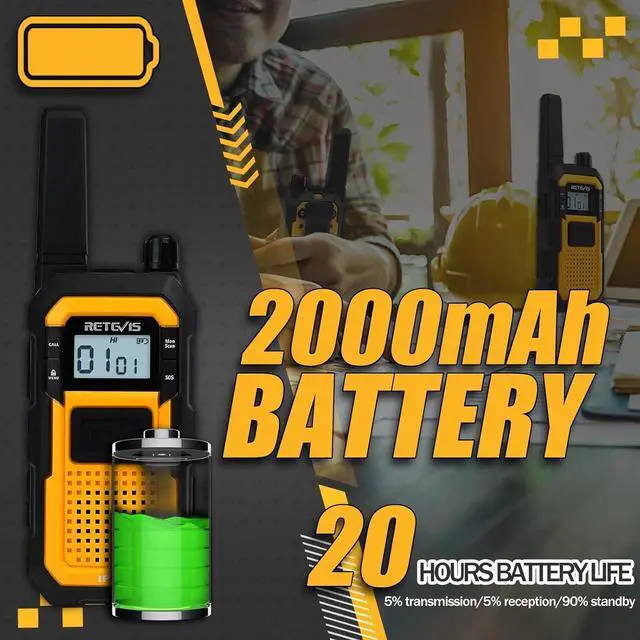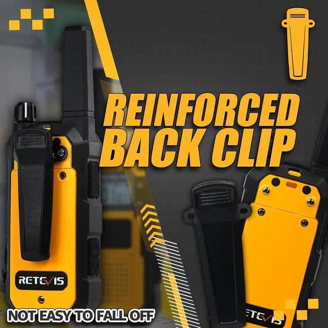 FCC ID: 2A3OORB48 ^^ Walkie talkies Rechargeable2000mAh lithium battery provides up to 20 hours of battery life; USB-C allows you to charge it at any time ^^ Tri-Reinforced Rib Designreinforced belt clips suitable for long hours and heavy workloads; short and reliable antenna; can storing this unit even in pockets without breaking