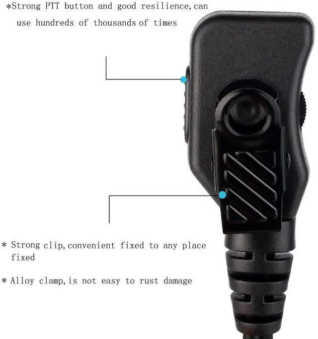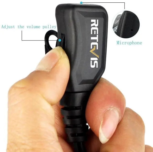M head 2 pin; compatible with CP185 CP100 CP100D CP200 CP200D GP300 GP2000 BRP40 A8 RMU2040 RMU2080 RMU2080D RDU4100 RDU4160D RDM2070d RMV2080 DTR550 DTR650 DTR700 DLR1020 HYT TC610 walkie talkies and more; can't compatible with any Retevis walkie talkies ^^ Volume adjustable; walkie-talkie earpiece has a sound adjustment knob; sound can be adjusted according to the applicable occasion and your own needs ^^ G shaped earhook earpiece; earhook design fits snugly in your ears without dropping for long time comfortable wearing; 360 rotatable ear hook which fits right or left ear and adjustable vertically to fit different ear size ^^ Long length and advanced PU wire; length of plug to PTT 37.4 inch; length of PTT to ear hang 20.42 inch; long enough and excellent for outdoor activities ^^ 360-degree rotating back clip; you can fix the intercom microphone in a convenient position for speaking to facilitate communication