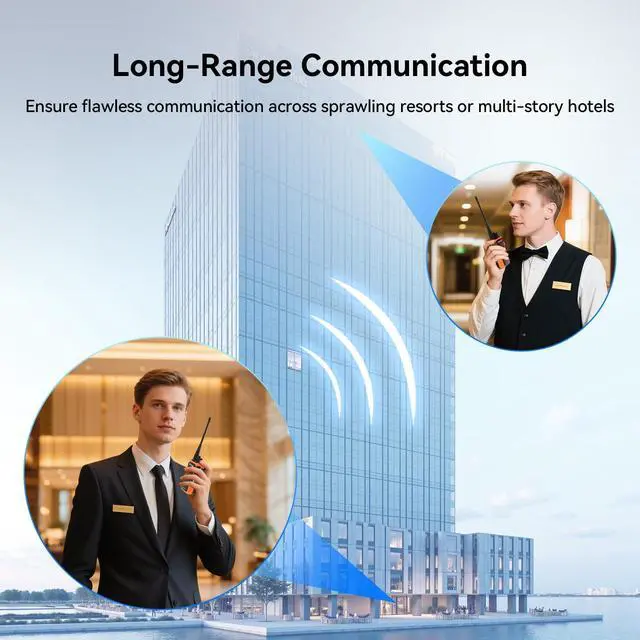 2 Way Radios Long Range; Experience unparalleled reach with the long-distance walkie talkie remote radio; delivering clear, reliable coverage across sprawling hotel properties, large event venues, construction sites, and manufacturing facilities ^^ Rechargeable Walkie Talkies with 100-Minute Fast Charging; reducing downtime with a 100-minute quick charge feature; ensuring rechargeable walkie talkies are always ready for action during critical hotel operations or emergency responses ^^ Easy to control CTCSS/DCS; the professional walkie talkies one-touch CTCSS/DCS control ensures clear; secure; and efficient communication; security teams can instantly activate CTCSS/DCS to block disturbance during emergencies ^^ Easy duplicating; seamlessly synchronize settings across multiple radio walkie talkies; duplicate your configured channels; codes; and VOX settings to your spouses and kids radios or to your teammates in seconds ^^ Easy pairing; power on two way radio while holding Channel 1 and Side Key 1; release when the light flashes; and pair subsequent channels automatically; press PTT to exit