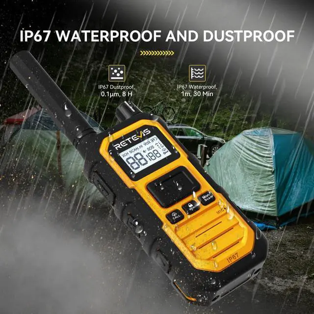 FCC ID: 2A3OORB48P ^^ CONQUER EVERY ADVENTURE - with IP67 waterproof and 0.1 m dustproof; 2-meter fall-proof; PC and TPE material; emergency walkie talkie easily copes with heavy rain and sandstorm weather ^^ NO LOW BATTERY WORRY - 2000 mAh battery provides 18-hour use time and 100-hour long standby; which helps you keep your friends or family connected all day ^^ PLAN NEXT MOVE - 11 NOAA channels help you get the latest weather conditions; enabling you to adjust the plan timely ^^ SAFETY FIRST - Remote emergency alarm; in an emergency; you can send a distress signal to teammates on the same channel; seeking help and ensuring safety
