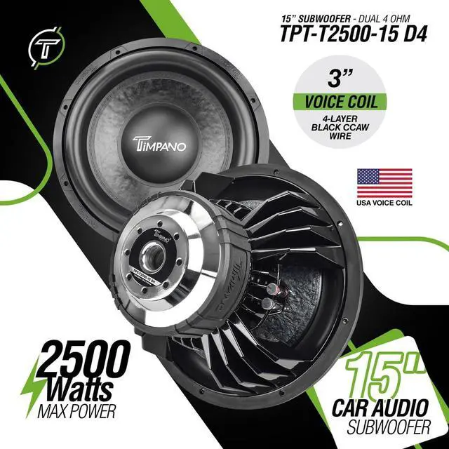 QUALITY YOU CAN TRUST: The Timpano 15 In Subwoofers T2500 Series combines performance, durability, and value with top-grade soft parts, American-made voice coils, and a colossal cast aluminum basket, setting a new standard for powerful systems.