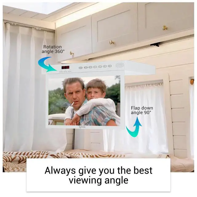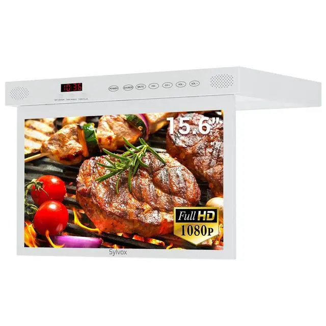 15.6 Smart TV This smart kitchen TV comes with Android 11.0, built-in Google Assistance and Chromecast, search for movies and shows across thousands of available apps, and easily cast movies, shows, and photos from your Android or iOS device to your kitchen TV ^^ 1080P FHD Flat Screen TV Sylvox RV TV adopts 15.6 -inch LED screen with 178 wide viewing angle, 1920*1080 FHD picture quality, HDR technology, 250 nits brightness and 3000:1 contrast ratio to provide clearer images and richer details ^^ Under Cabinet Television The space-saving design mounts under the cabinets so your countertop won't be cluttered.