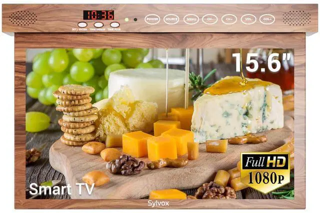 It can also be easily installed inside a cabinet or under the roof, saving valuable counter space. ^^ Easy setupFlap-down kitchen TV installation requires only a few screws and a screwdriver and less time than it takes to brew a cup of coffee. No need to worry about complicated installation instructions or difficult wiring. ^^ More FunctionsFeatures a clock and timer alarm for time management while cooking. Waterproof touch keys, Bluetooth 5.0, and 2.4 +5G WiFi offer convenience and endless entertainment. Ideal for kitchens, RVs, or boats, this 15.6 '' TV supports wide voltage (DC 12V, 9-32V, AC 100-240V) for safety and versatility.