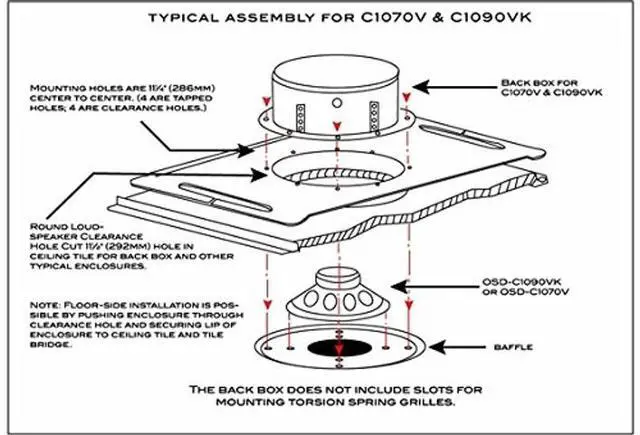 ^^ POWER: The OSD Audio C1070V Speaker has a frequency response of 40Hz - 20kHz, 20 watts of power handling, and an impedance rating of 8ohms. It flushes into the ceiling for a subtle, sleek look.