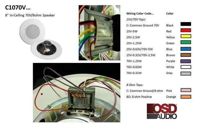 ^^ 70V CONNECTION: The OSD Audio Commercial In-Ceiling and Hanging Pendant Speakers offer you the ability to daisy chain multiple speakers using 70V transformer to your 70V powered amplifier.