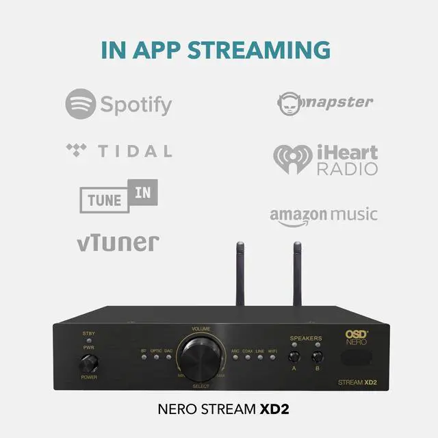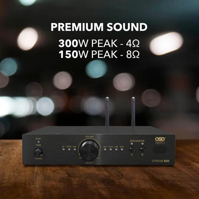 Power Output @ 8: 150 W x2 Peak, Stable Operation with 8 to 4 Ohm Speakers, Designed to Drive Bookshelf and Tower Speakers with Clean Stereo Sound ^^ Connect Directly to Your Television Using HDMI ARC for Simplified Control and Clearer Stereo Sound Without a Traditional AV Receiver ^^ Built in 2.4G WiFi Supports Spotify Connect, Music, Tidal, AirPlay and DLNA, Control Zones, Group Compatible Units and Adjust Volume Through the OSD Player App ^^ Includes HDMI ARC, Optical, Coaxial, RCA Line Input and USB DAC for Integration with TVs, Media Streamers, Turntables with Preamp and Computers ^^ Dual Speaker Outputs Allow A or B Selection or Both, Plus Dedicated Subwoofer Output for Enhanced Bass and Expanded Room Coverage