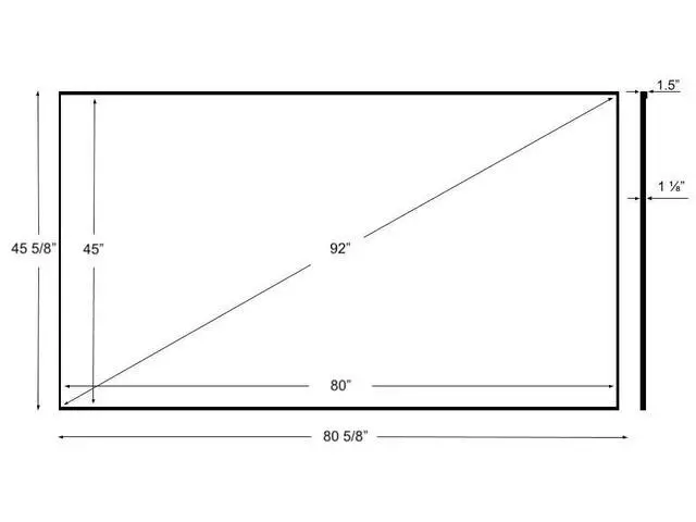 Wall Mounted Fixed Frame Projection Screen (Overall Size 45.63" Tall x 80.5" Wide) (Viewing Area 92" Diagonal x 45" Tall x 80" Wide) No option for Legs or Stands with this product. Recommended for projectors with Native 16:9 Resolution ^^ 1.1 Gain White screen surface with an exceptionally wide viewing angle at 160 degrees with no resolution loss at any viewing angle. Works great with Long, Short and Ultra Short Throw projectors. Recommended for dark dedicated theater rooms. ^^ 0.28" (7mm) Thin Bezel Projection Screen Perfect for UST Projectors. Heavy duty extruded aluminum the projection material wraps around.