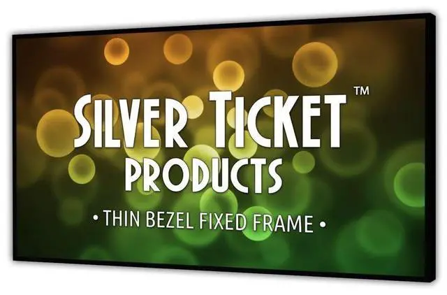 Silver Ticket Products introduces its highly-requested thin-bezel fixed frame projection screen designed for all projector types. The S7 series frame does not block light from UST projectors. This series of projection screens features a 7mm thin bezel for clean appeance that mimics the latest thin-bezel, flat-panel televisions. This screen features real projection screen material, not a sheet. The material is high-quality woven material at 1.1 gain that is designed for watching movies. The woven material allows for speakers to be placed behind the screen for a cinema like audio exprience. This screen features the Silver Ticket tension rod system for truly quick and secure installation of the projection material.