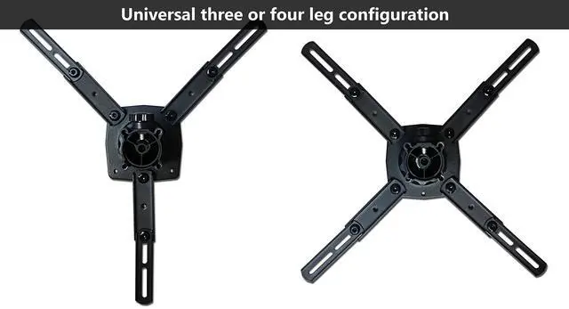 This mount is crafted from high-grade steel for powerful durability at an affordable price. The Universal Projector Mount includes four extendable, swiveling, spider-type arms for completely universal mounting capability. Easily position your projector with the tool-less tilt-adjustment knob and tool-less washer and thumb-screw vertical extension adjustment. The Universal Projector Mount allows steady, secure placement of any projector from 13.5" to 24". Full 360 degrees rotation and 15 degrees tilt adjustment allows for perfect alignment of your projector. Servicing your projector is simple with the tool-less quick-release system. This projector mount is the perfect choice for any setting - whether it is a classroom, boardroom, home theater, or anywhere else you may need to install a projector.