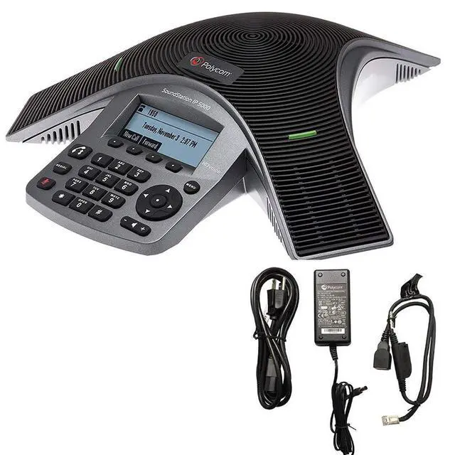 Corded VoIP Conference PhoneHD Voice ClaritySession Initiation Protocol (SIP) Full Duplex OperationAn optional AC Power Kit is also availableWhite LED Backlight w/Custom Intensity ControlSecure ConferencingSelectable RingtonesIntegrated IEEE 802.3 af PoE SupportMultilingual Menu Support (Chinese Danish Dutch English French German Italian Japanese Korean Norwegian Portuguese Russian Spanish Swedish) The microphone picks up voice up to seven feet (2-meters) away and its compact footprint is designed for executive offices and smaller conference rooms with up to six participants Polycom HD Voice technology makes your conference calls sound amazingly clear and lifelike It resists interference from mobile phones and other wireless devices while delivering clear voice conferencing without distractions