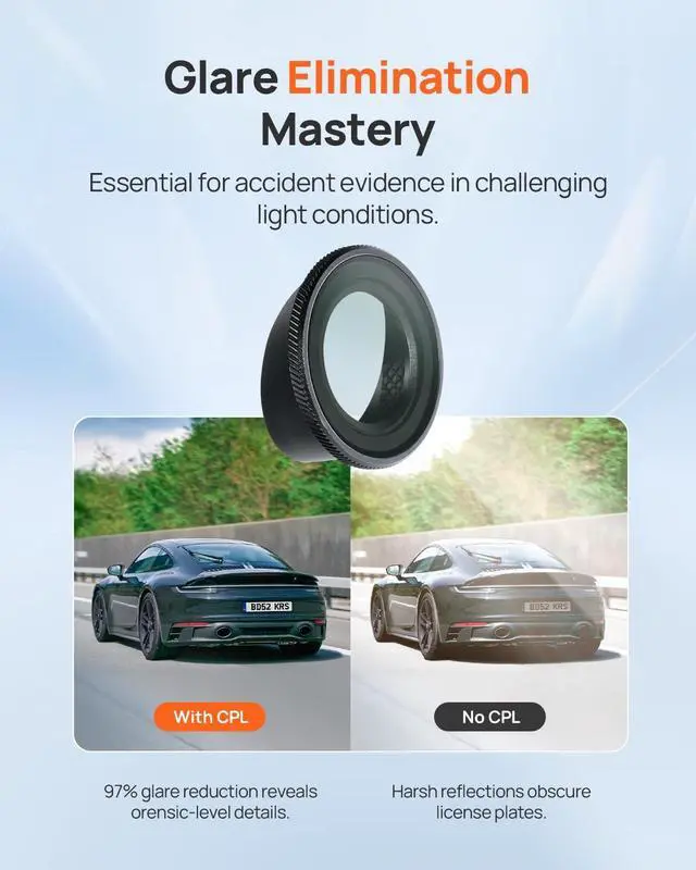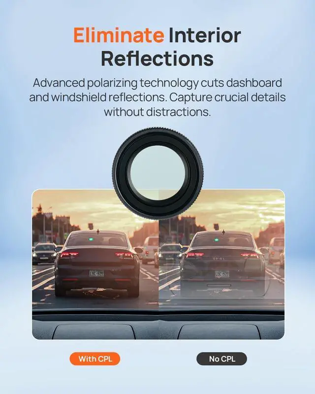 Magnetic Precision AlignmentThe magnetic system ensures perfect lens alignment in 2 seconds. Strong neodymium magnets withstand 2G vibrationsno misalignment even on rough roads ^^ Glare-Free Forensic ClarityMulti-layer polarizing film eliminates windshield reflections. Capture license plates and road signs clearly in backlit sunrise/sunset conditionscritical for insurance claims ^^ Military-Grade Durability9H hardness coating resists scratches from daily cleaning. Tested for 500+ attachment cycles with zero magnet degradation. Survives -40F to 200F temperature extremes ^^ True-Color EnhancementOptical glass maintains native 4K resolution while boosting color accuracy. Reduces asphalt glare for safer night driving ^^ Tool-Free InstallationSnap-on design works with lens housingno adapters needed.
