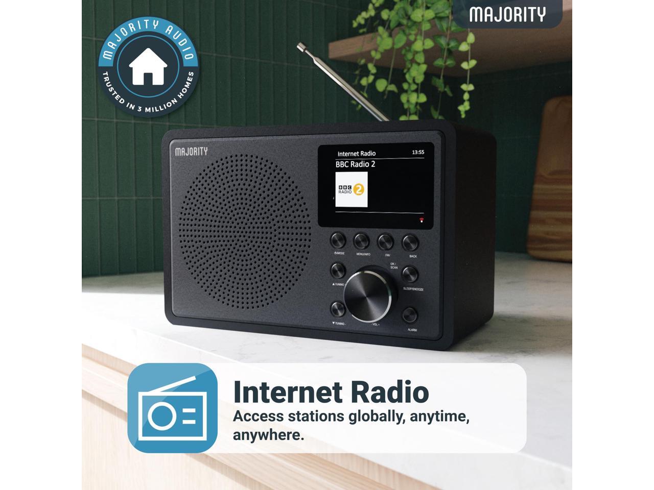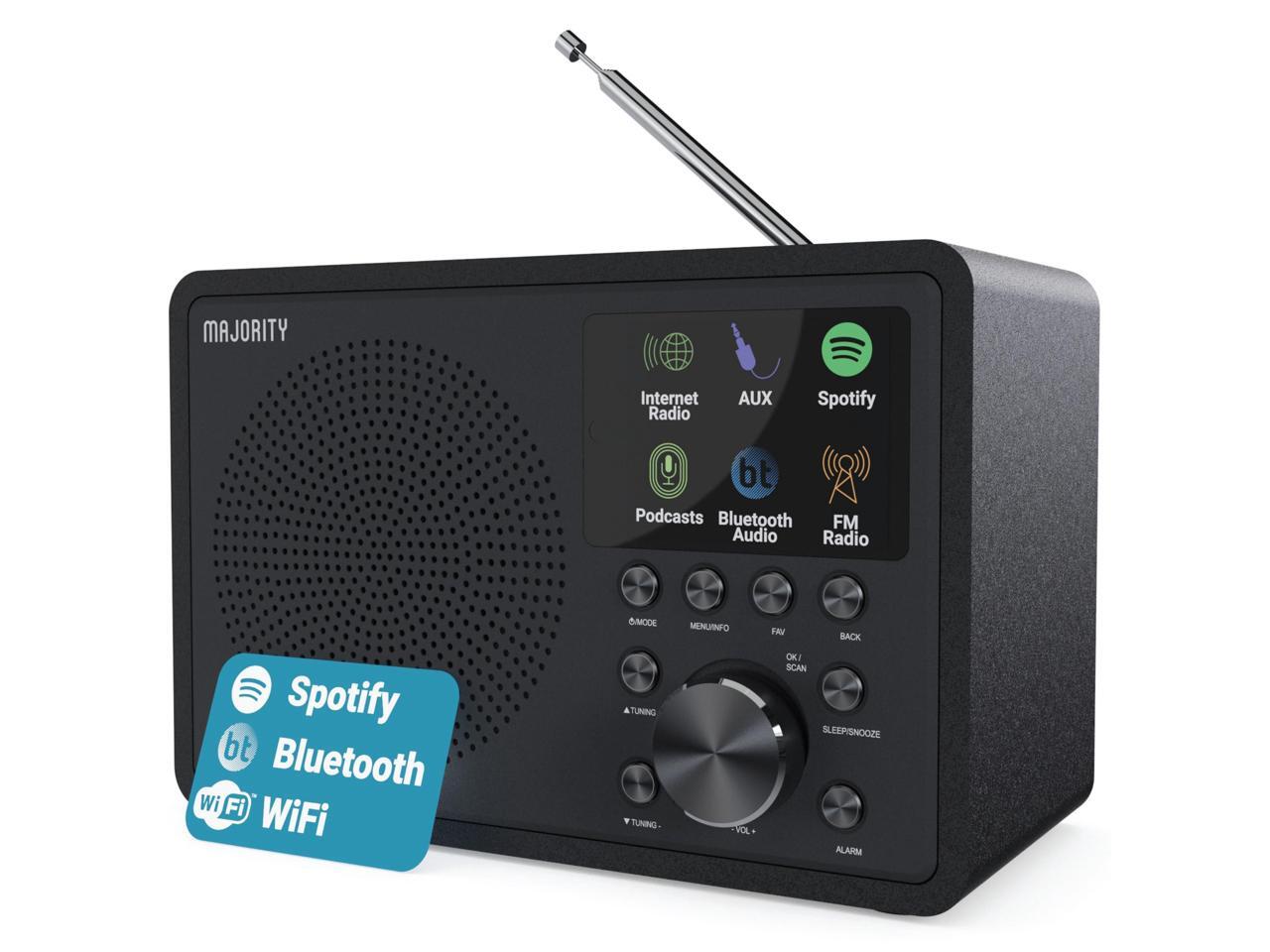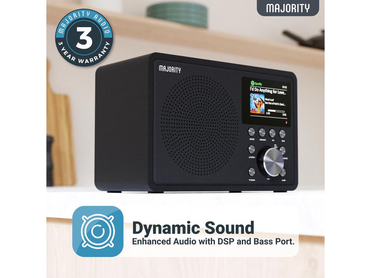 Internet Radio for Home with WiFi and AM/FM | DSP Speaker Perfect for Bedroom, Kitchen, and Living Room Use | FM, Spotify Connect, Multi-Alarm, Frontier Oktiv App Control | Majority Touro