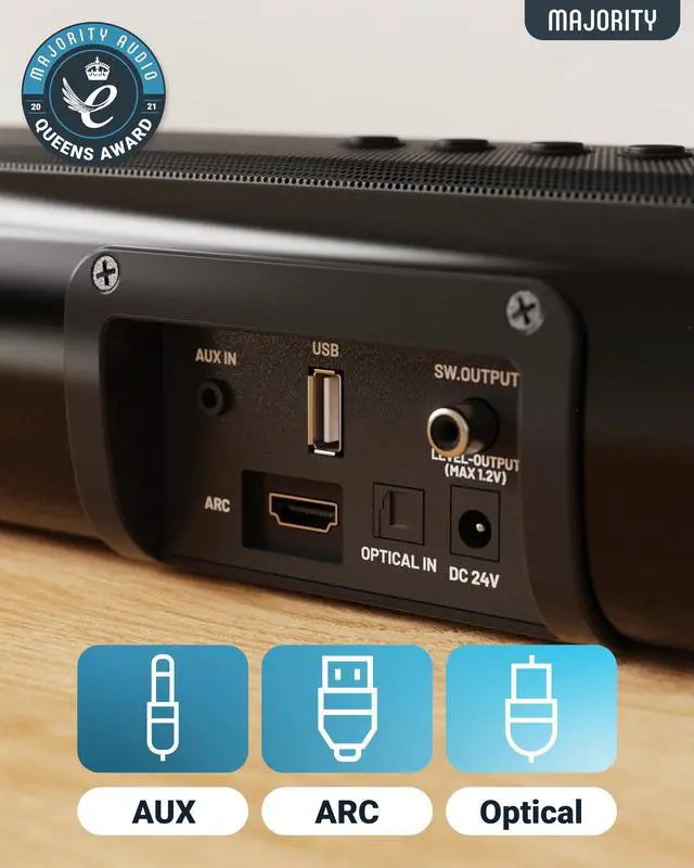 ^^,,: Offering HDMI Arc, Optical, Bluetooth, and AUX inputs. Connect your TV, gaming console, smartphone, or tablet with ease, ensuring full-range compatibility.