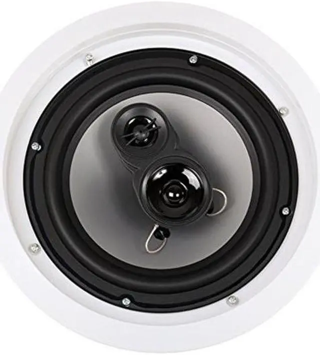 Each speaker features a unique pressure lock mounting system that clamps tightly to drywall, and fits round speaker holes the size of 9.49 inches with a mounting depth of 3.7 inches. The spring loaded connections, ABS housings, and grills can be painted to match your decor.