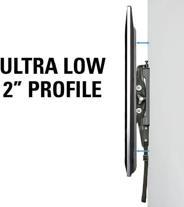 Low Profile, Sophisticated & discreet, this slim tv mount is truly low profile. It conveniently allows your tv to sit 1.9" from the wall for a flush profile. Unlike our competitors, you do not need any tool to tilt this tv mount; It smoothly moves up or down with the touch of a finger. Thanks to the lateral shift functionality; your TV can also slide side-to-side even after installation for perfect wall positioning.