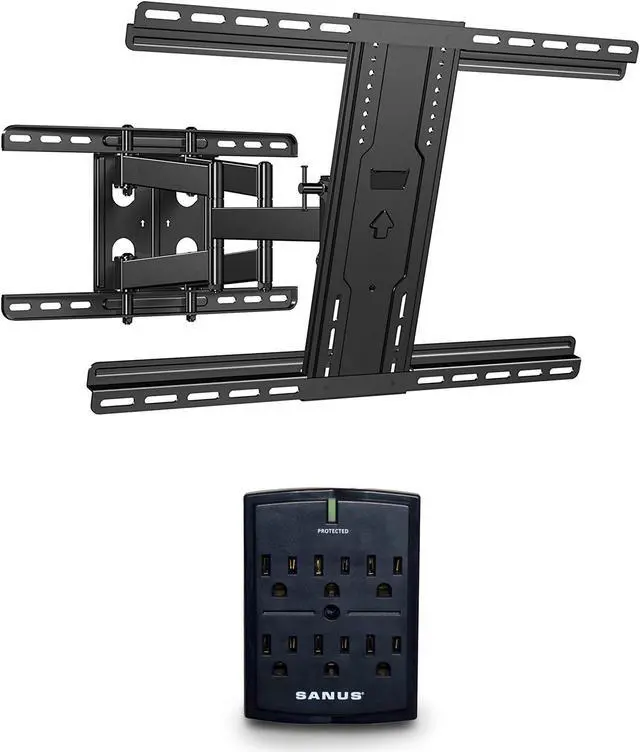 SANUS Premium Full Motion TV Mount for 42"-90" TVs With On-Wall Low Profile 1080J Fireproof Surge Protector