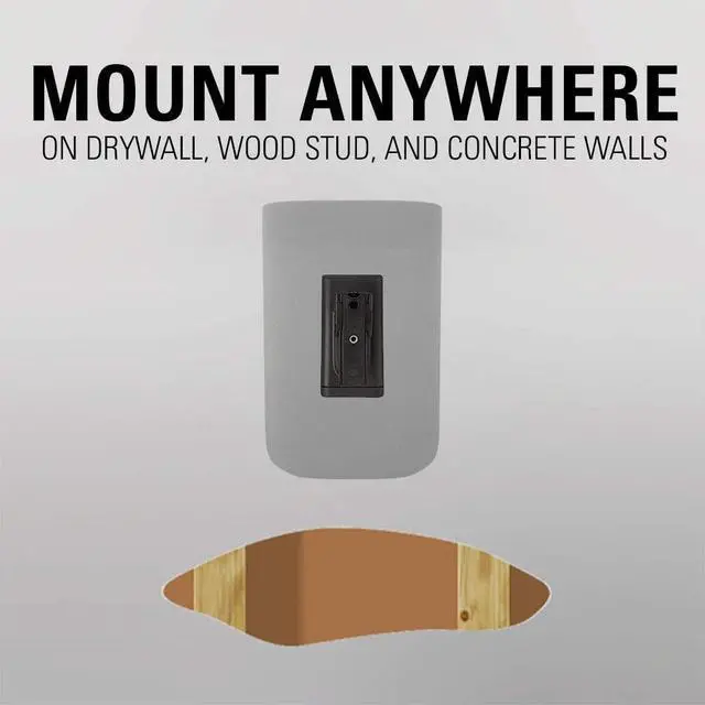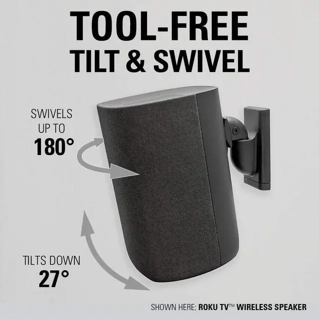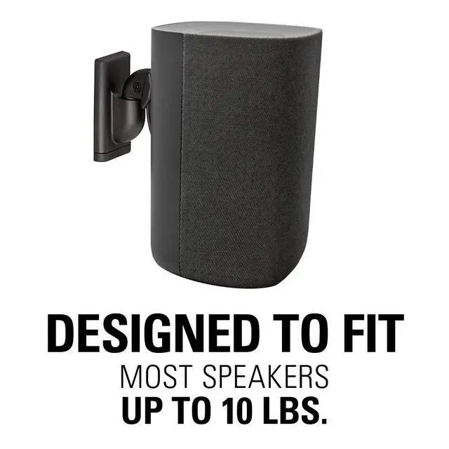 Enjoy optimal audio quality anywhere in the room with the SANUS Universal Speaker Wall Mounts. ^^ This sleek mounting solution provides a clean look and saves space by mounting your wireless speakers directly to the wall. ^^ With up to 27 of tilt and 180 of swivel, achieve the perfect listening angle by making effortless speaker adjustments with only your hands. No tools required. ^^ Designed for use on drywall, wood studs or concrete, this mount holds most speakers up to 10 lbs. See compatibility list below. ^^ Installation takes just 15-minutes and all hardware is included.