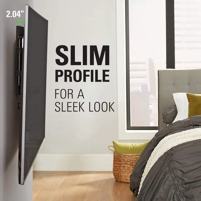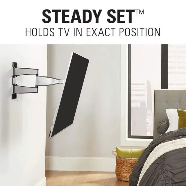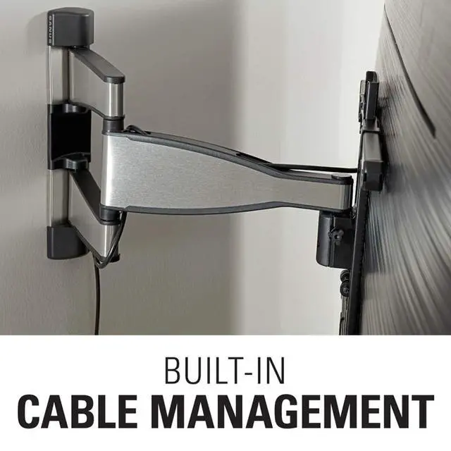 Expertly crafted with FluidMotion design for unparalleled smoothness. Effortlessly extend, tilt and swivel your TV. ^^ With 20" of extension, and up to 15 of tilt and 60 of swivel left and right, get a great view from any seat in the room. ^^ Low profile design places TV close to the wall for a streamlined look that complements todays sleek TVs ^^ Ultra-strong, solid steel frame provides maximum support ensuring your TV will stay securely in place. ^^ Stylish brushed metal exterior blends seamlessly with TVs and decor
