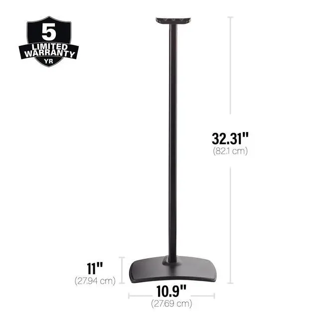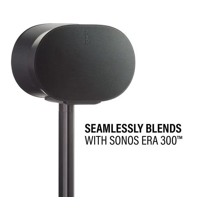 The SANUS Fixed-Height Speaker Stand designed for the Sonos Era 300 offers the optimal listening height, cable management and sleek design. This stand is sure to deliver optimal audio performance regardless of your listening needs. Constructed of durable steel, and extruded aluminum, this not only resists wear, but also perfectly complements the aesthetics of the Sonos Era 300 for a sleek, seamless look. Perfect for use in any setup, be it home theater, surround sound, or ambient listening. For a cable-free look, our Press Fit cable management technology secures cords down the back of the stand for concealment.