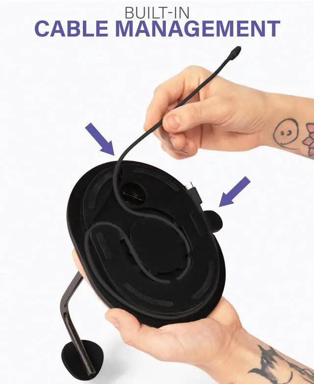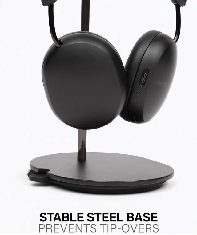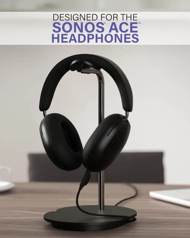 Thoughtfully designed in exclusive partnership with Sonos, this stand has been specifically tailored to complement the new Sonos Ace headphones. Constructed using premium materials, this stand's durability and stability facilitate a sleek, secure storage solution exclusively designed for the Sonos Ace headphones. Stand maximizes table space and eliminates clutter, securely tucking headphone cord out of sight rather than hanging messily. Tailored, silicon cradle design provides a secure resting spot protecting the Sonos headphones from possible damage, wear and tear. No more tangled cords or messy setups: Integrated cable management neatly tucks away excess cord for a clean, clutter-free look. Innovative magnetic, cable-holding tab enables effortless power connection and eliminates dangling and tangling of excess cord. Stand comes ready for effortless assembly right out of the box with all necessary hardware included. Custom-designed installation screw can be secured with a screwdriver or coin, so no tools, no problem! Available for purchase in black or white, stand's stylish design seamlessly complements cool, clean Sonos aesthetic.