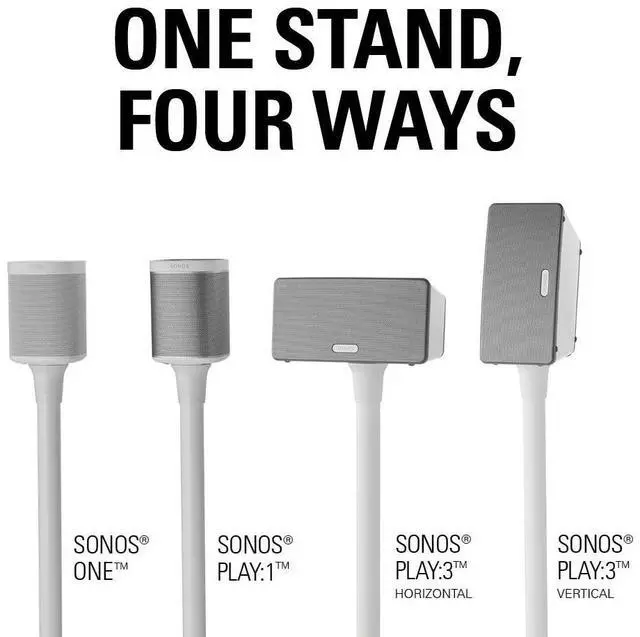 Sonos PLAY: 3 in either horizontal or vertical orientation, the versatile WSS21 puts your wireless speaker at the manufacturer's recommended listening height, promising perfect audio performance. Stands are sold as single pieces or in pairs to accommodate any sort of system arrangement, be it home theater, surround sound, or ambient listening. For a seamless look free of pesky cables, our own Press Fit cable management technology secures cords down the back of the stand for complete concealment. Assembling easily and in only 15 minutes, you'll be enjoying perfect sound from this sleek stand in no time.
