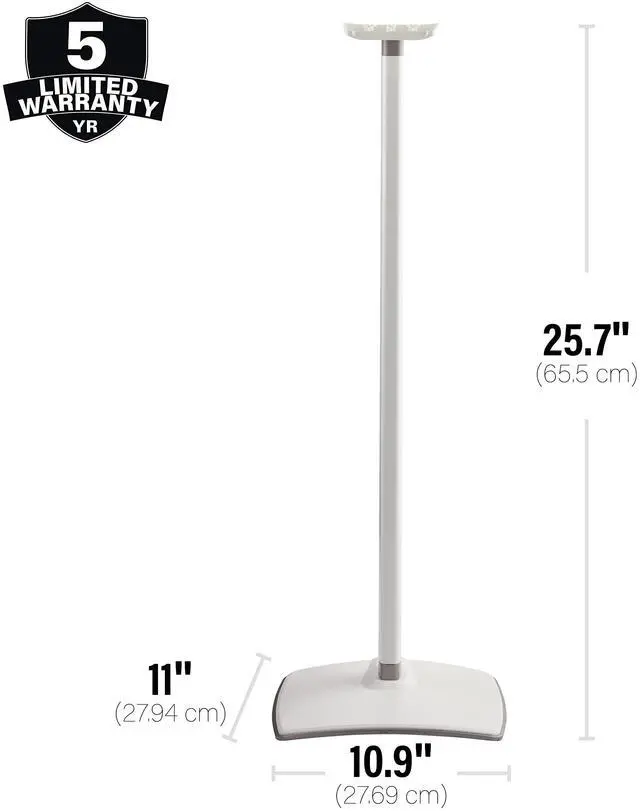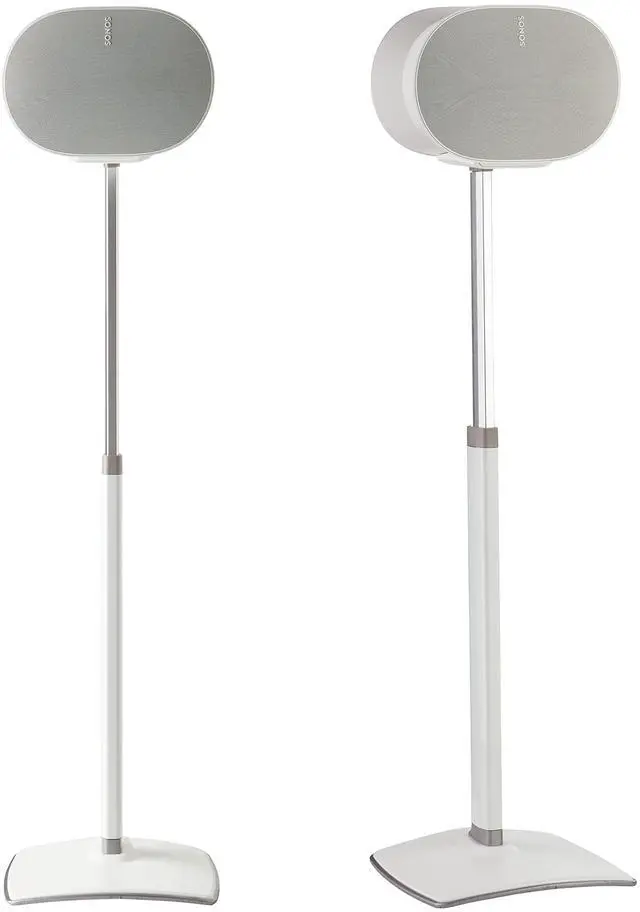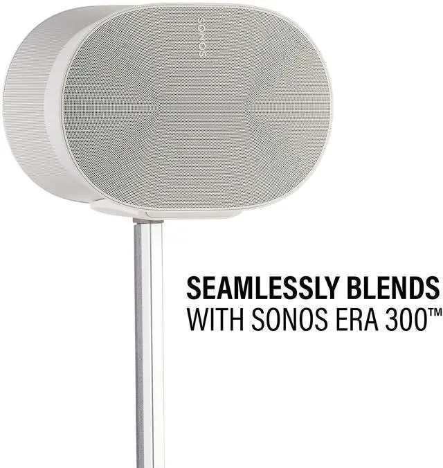 Experience audio excellence with a speaker stand specifically designed for Sonos Era 300 speakers, ensuring the proper fit along with the best sound quality and aesthetics for your home entertainment setup. ^^ Take your sound to new heights with 17 inches of customizable height adjustment, providing flexibility to create optimal sound for your unique space. ^^ Enjoy peace of mind with rubber pads for hard floors that prevent scratches and adjustable carpet spikes for added stability on carpets, making this Sonos stand suitable for any room. ^^ Say goodbye to clutter. These floor speaker stands are designed with integrated cable management to keep your wires neatly organized, enhancing the overall look of your space and reducing tripping hazards.