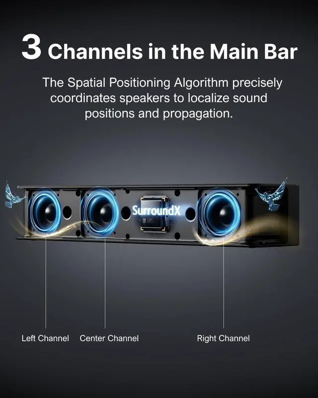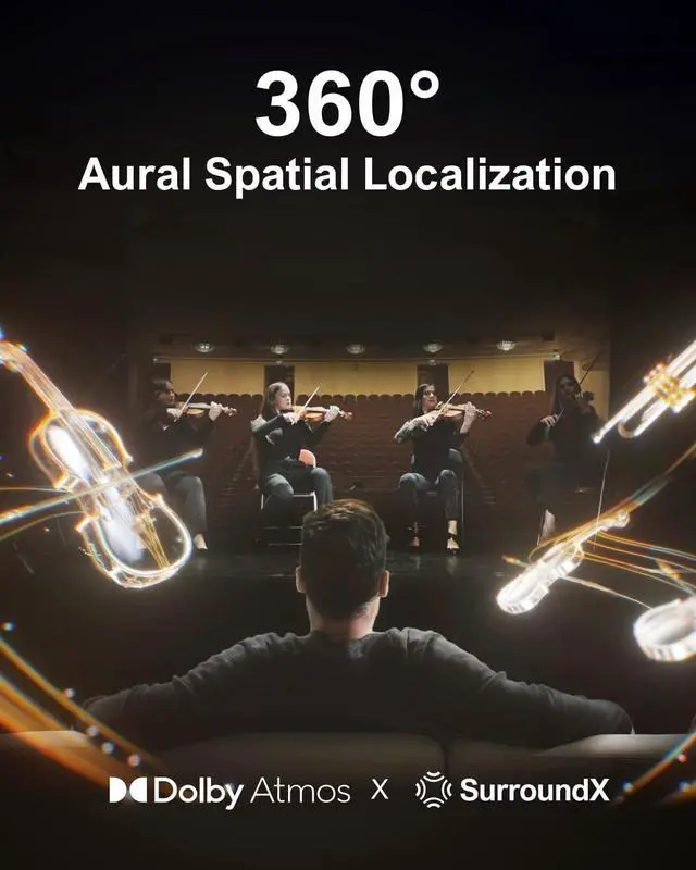 (Note: The D80 does not support DTS decoding. ) ^^ Dolby Atmos Creates True Three-dimensional Soundscape: The Poseidon D80 is not a simple copy of 2.0 channel stereo audio to surround speakers; it dynamically adapts using Dolby Atmos technology. Whether youre watching a movie or streaming your favorite show, built-in 3D positioning algorithms precisely place each audio element around you, crafting a full 360 sound environment that puts you right in the middle of the action. Experience sound as it was meant to be heard.