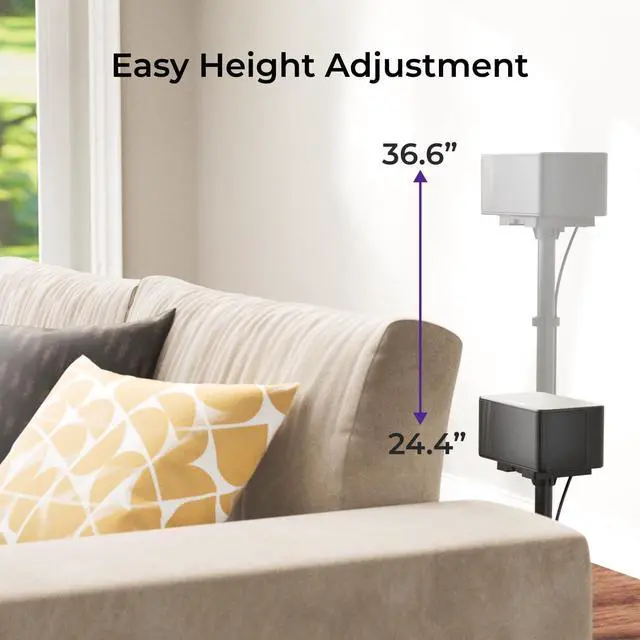 ^^ Height Adjustable: The package includes adjustable height and width components to fit different speaker sizes. The stand's height is adjustable from 24.4 to 36.6 inches with a simple knob. For the best audio experience, adjust the speakers to ear level to enhance immersion and ensure richer, clearer sound in your home theater.