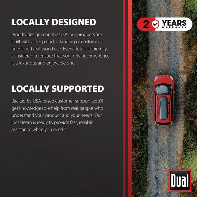 An MP3/WMA Player, AM/FM tuner with 30 Station presets (18 FM/12 AM) and a USB port, which also charges your device. ^^ CUSTOMIZABLE SELECTIONS Customize your car stereo music settings and make it your own with a 2 band tone control (bass/treble) and 4 preset EQ curves (Pop Jazz Rock & Flat) to choose from. ^^ 2 YEAR WARRANTY - When you register your product on Dualav. com. 1 year standard warranty.