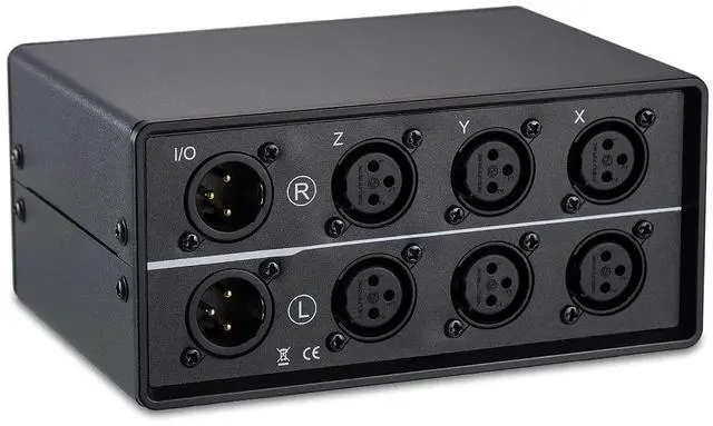 MC103-Pro is a 3-way passive stereo audio splitter. It supports 3 stereo XLR inputs and 1 output. You can choose freely according to your audio device.