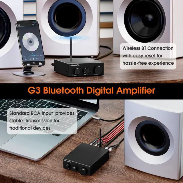 & RCA Connectivity: Stream music wirelessly via Bluetooth 5.0 (fast, stable connection) or plug in TVs/PCs with RCA inputs for flexible audio. ^^