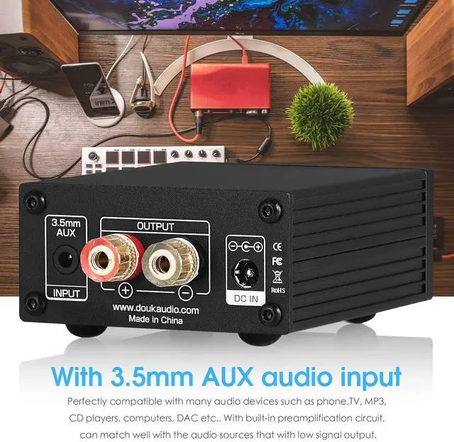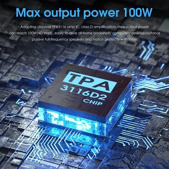 Full frequency mono channel amplifier with 100W powerful output can drive one single speaker ^^ Added NE5532 buffer OP-AMP to increase more dynamics than other similar products ^^ Sound is very clean with balanced tri-frequency and no background noise ^^ Super mini size suits very well for home, office and desktop use ^^ 3.5 mm input and Banana plug (one channel) output; With our customized high-quality power supply
