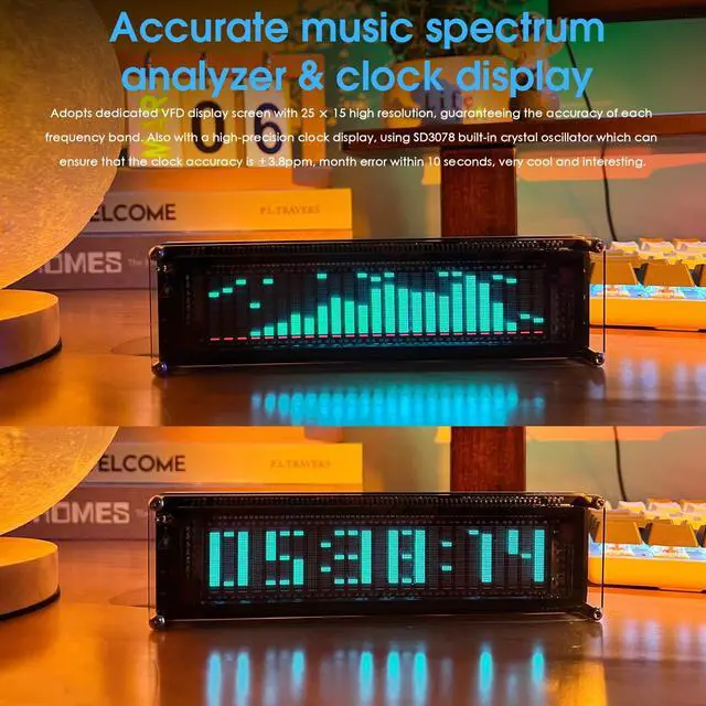 Multiple Modes: With five frequency division and amplification curve modes, the AK2515 enhances visual clarity and sound quality. The noise filtering function significantly improves sound clarity, making it suitable for various environments. Choose from auto, deep sleep, music spectrum, and clock display modes to optimize your audio analysis.